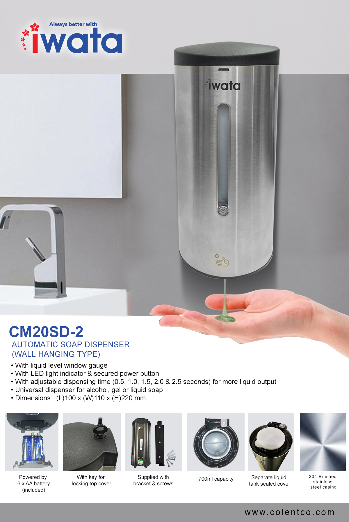 • With adjustable dispensing time (0.5, 1.0, 1.5, 2.0 & 2.5 seconds) for more liquid output