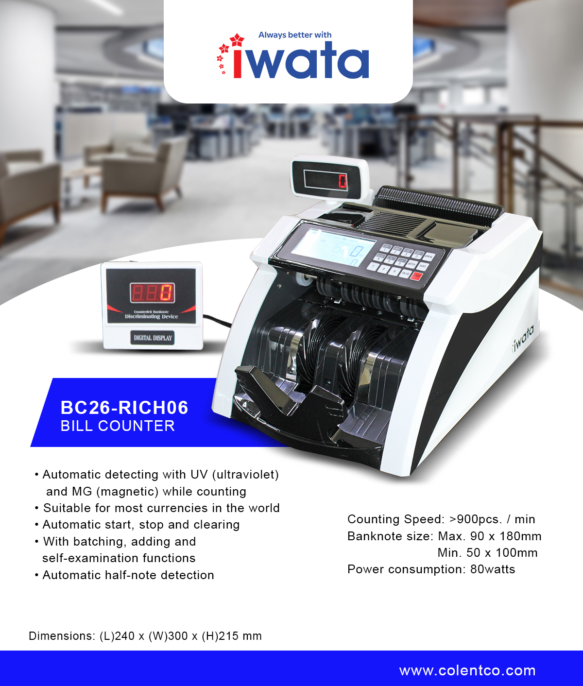 • Banknote size: Max. 90 x 180mm /  Min. 50 x 100mm