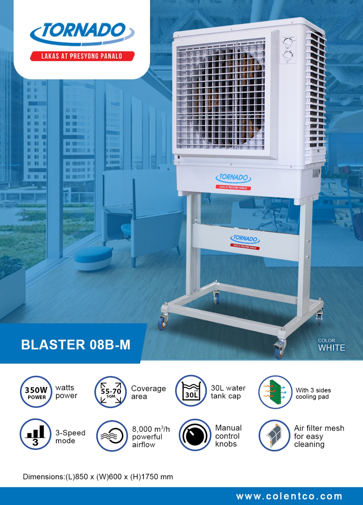• 3-speed powerful airflow 8,000 cu. m/hr.